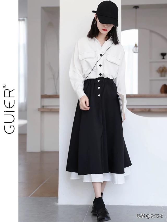 中长裙半身裙搭配什么样的上衣好看?不请自来~