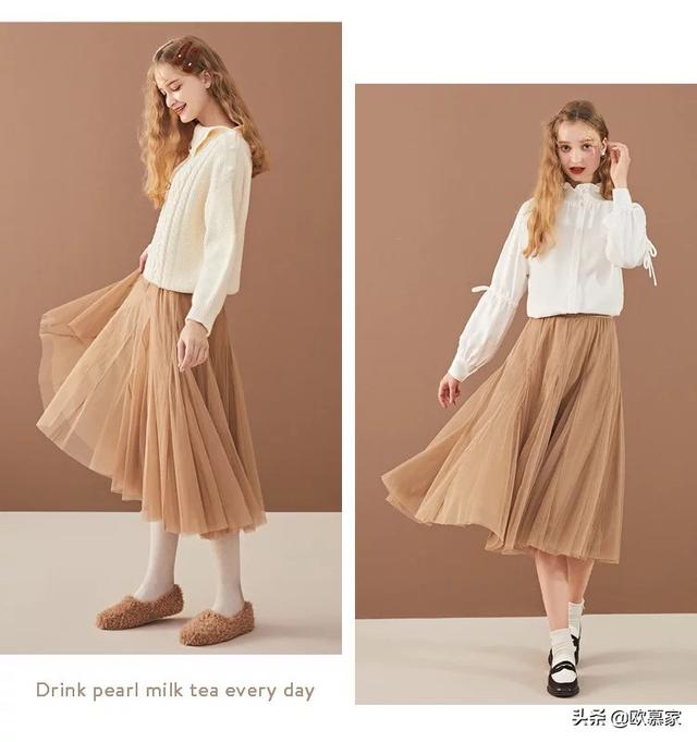 材质偏软、飘逸的半身裙:比如纱裙、绸缎裙等,本身就是非常温柔的面料,可以搭配衬衫就多了一份中性气,不会太软。而和毛衣、针织衫就是最最温婉的搭配啦,看起来没有攻击性、没有距离感。