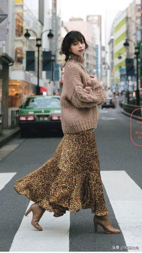 相比之下日系的搭配则更加轻熟,一般选贴身的针织衫突出女性的曲线美,再加上优雅的碎花裙,贤惠大气温柔的女性形象让人倾心~