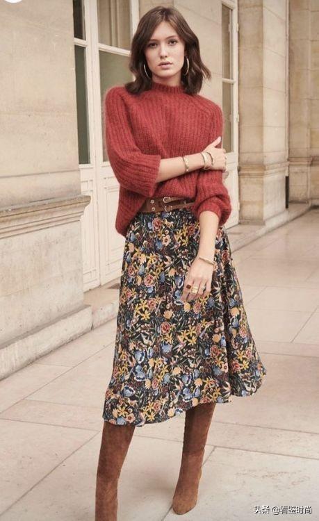 针织衫搭配碎花裙主要有两种风格流派:日韩系穿搭、法式穿搭以及欧美风。